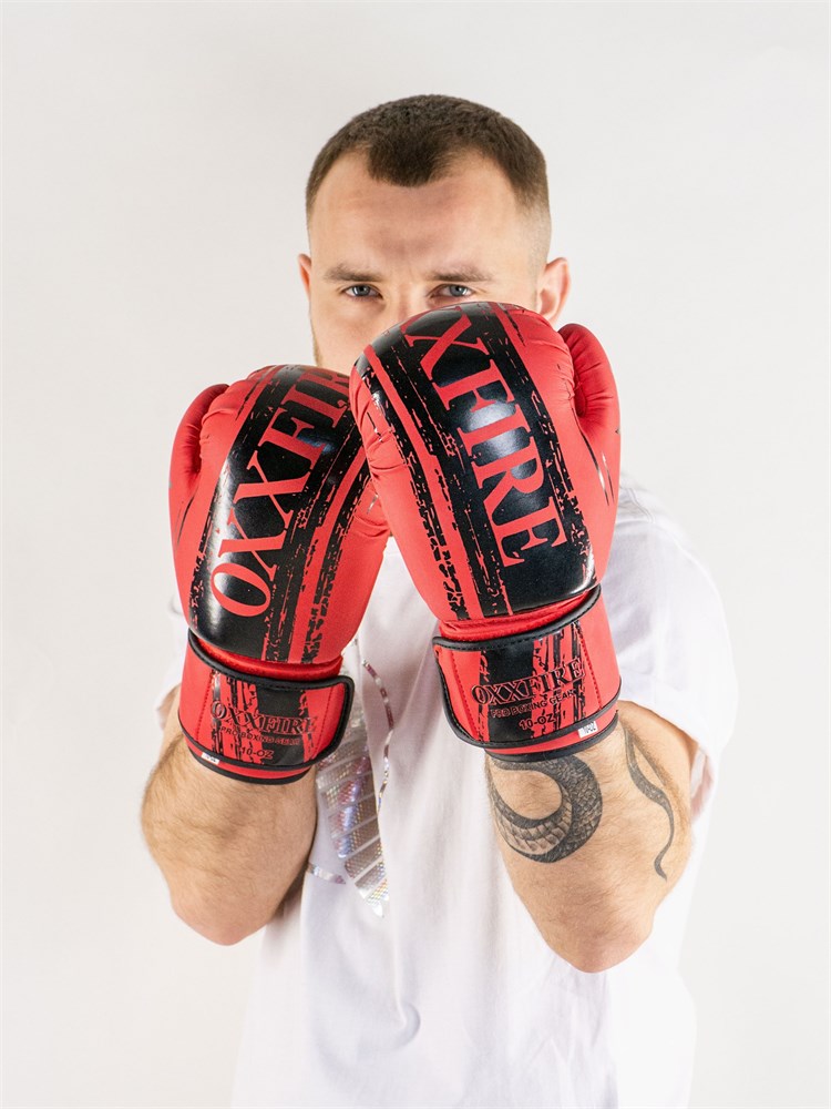 Боксерские перчатки OXXFIRE COMFORT, PVC красный/черный