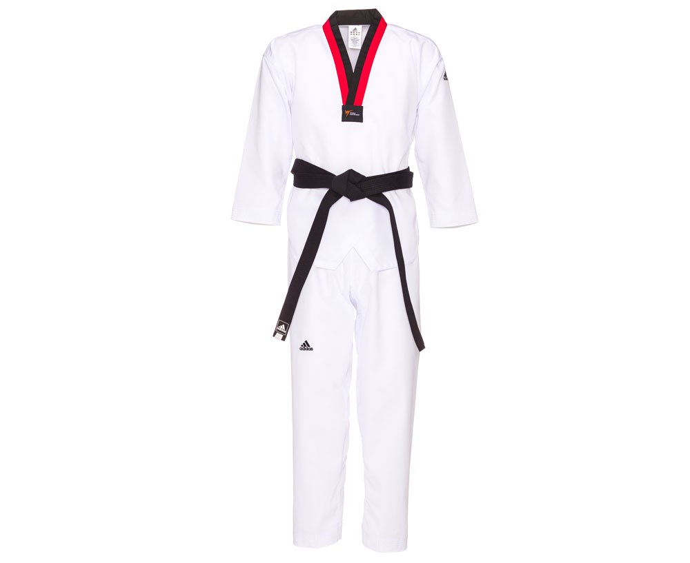 Добок для тхэквондо подростковый WT Adi-Start белый с красно-черным воротником
