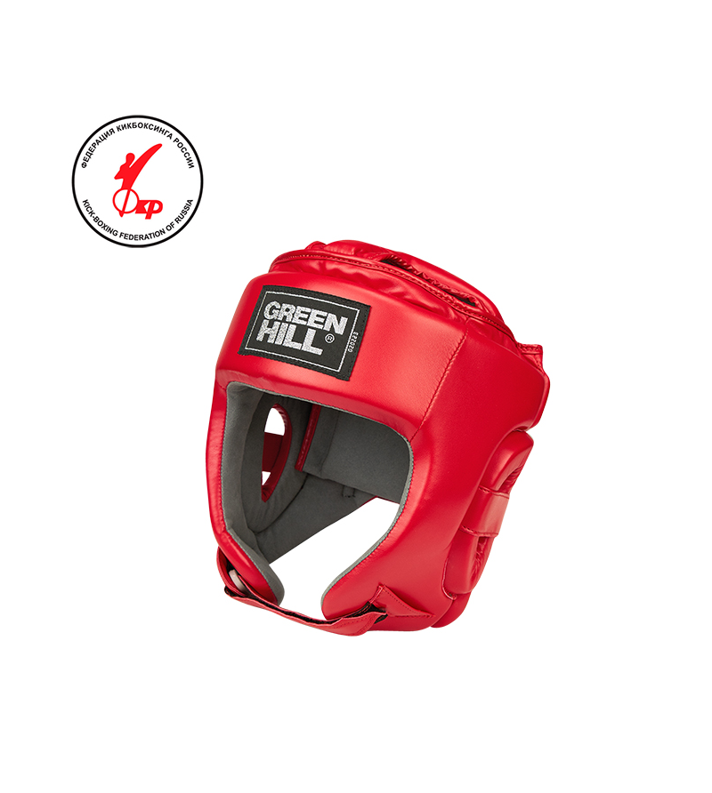 Шлем для кикбоксинга GREEN HILL одобрен Федерацией Кикбоксинга России для выступления на соревнованиях. Конструкция шлема обеспечивает максимальный обзор. Уши защищены специальными модулями для предотвращения травм барабанных перепонок. Внешняя сторона шлема выполнена из синтетических материалов, внутренняя сторона из искусственной замши. Подбородок на ремешке с липучкой. Затылок на двойном встречном замке, верх с защитой теменной области.