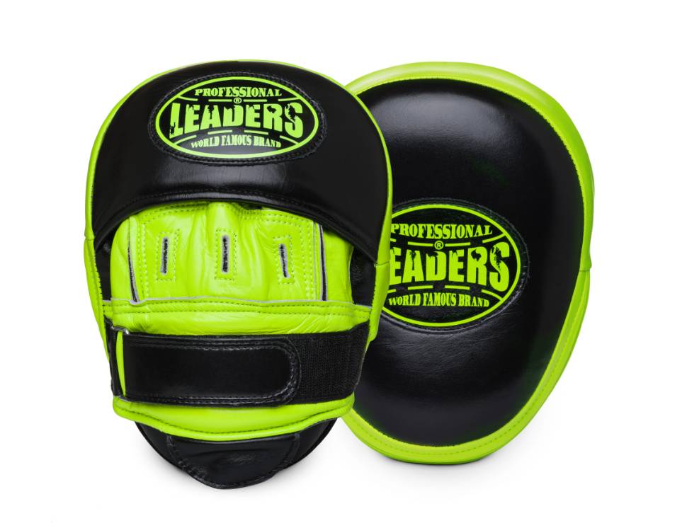Лапы тренерские LEADERS CURVED BK/GN (ONE, кожа, черный/зеленый)