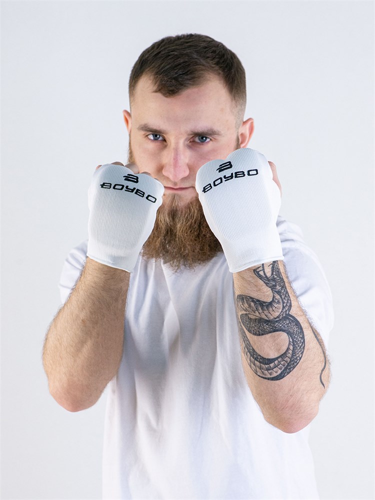 Трикотажные накладки на руки (защита для каратэ) BoyBo с открытыми пальцами, изготовлены из хлопка и эластана с амортизирующим вкладышем на ударной поверхности. Лёгкие перчатки боксерские с удобной посадкой на кисти, обеспечивают защиту не стесняя движения спортсмена.