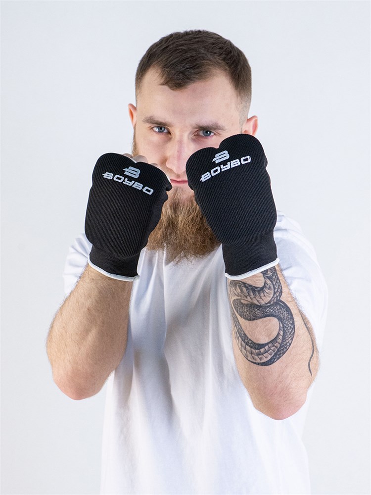 Трикотажные накладки на руки (защита для каратэ) BoyBo с открытыми пальцами, изготовлены из хлопка и эластана с амортизирующим вкладышем на ударной поверхности. Лёгкие перчатки боксерские с удобной посадкой на кисти, обеспечивают защиту не стесняя движения спортсмена.