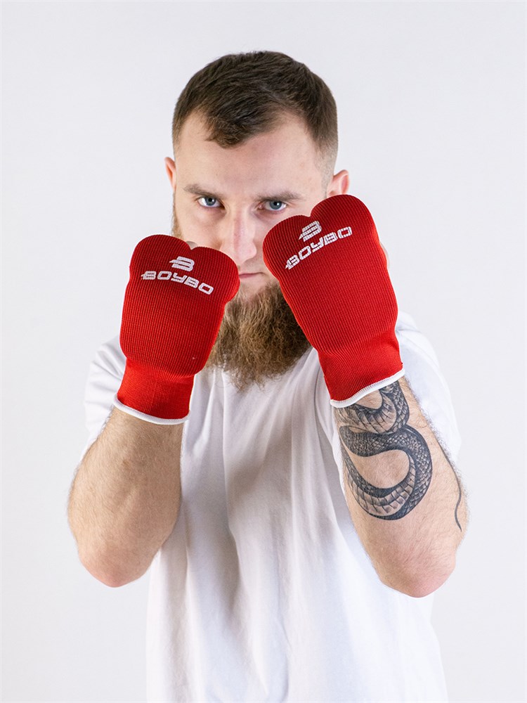 Трикотажные накладки на руки (защита для каратэ) BoyBo с открытыми пальцами, изготовлены из хлопка и эластана с амортизирующим вкладышем на ударной поверхности. Лёгкие перчатки боксерские с удобной посадкой на кисти, обеспечивают защиту не стесняя движения спортсмена.