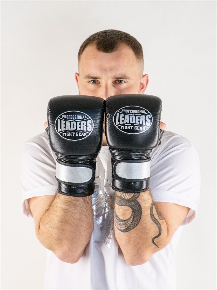 Перчатки снарядные LEADERS REBEL на липучке кожа, черный/серебристый