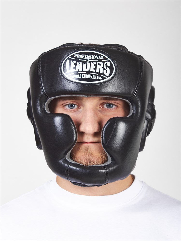 Шлем боксерский LEADERS LS FULL FACE (кожа, черный)