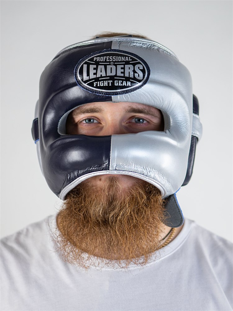 Шлем боксерский LEADERS LS ULTRA с бамперной защитой BL/SIL (синий тёмный/серебристый)