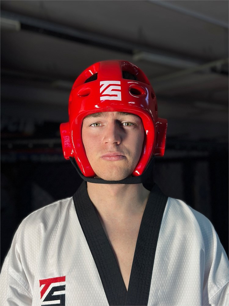 Шлем тхэквондо сверхлегкий профессиональный цельнолитой шлем эргономичной формы с закрытым верхом. Усиленная зона ушных раковин. Лобная часть шлема усиленна. Теменная и височная зоны с вентиляционными отверстиями. Крепление под подбородком эластичным ремнем с липучкой.