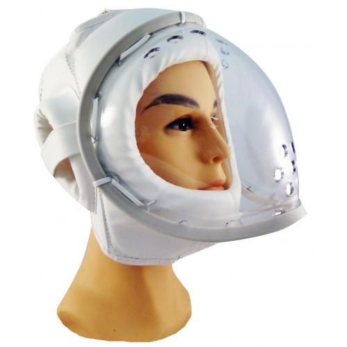 Шлем с маской для кудо и других видов контактных единоборств. Защита шлема усилена в области ушей, затылок и верхняя часть головы защищены накладками. Круглая маска из толстого пластика амортизирует при ударе, гарантируя максимальную защиту. Для дыхания в маске есть зона с отверстиями и промежуток между шлемом и маской.