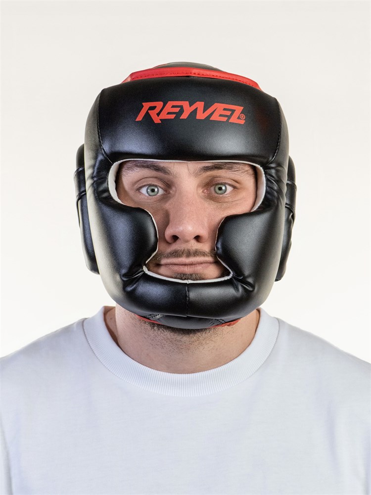 Шлем тренировочный рекомендуют использовать спортсменам во время спаррингов. По сравнению с моделями для соревнований, его конструкция предусматривает дополнительно защищенные подбородок, скуловые кости, макушку. Шлем имеет хорошую обзорность. Изготовлен из прочной высококачественной эко-кожи. Внутренний наполнитель многослойный вкладыш из пенополиуретана и пенополиэтилена различных плотностей выполняет функцию амортизатора и хорошо держит форму.