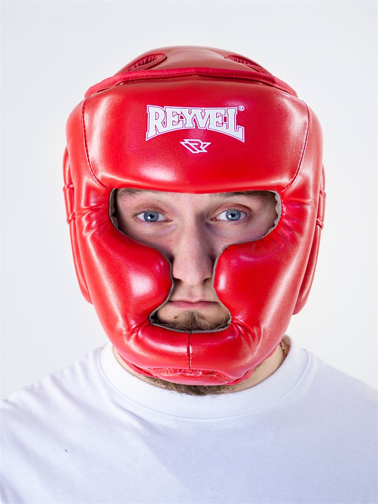 Тренировочный шлем рекомендуют использовать спортсменам во время спаррингов. По сравнению с моделями для соревнований, его конструкция предусматривает дополнительно защищенные подбородок, скуловые кости, макушку. Шлем имеет хорошую обзорность. Изготовлен из прочной высококачественной искусственной кожи. Внутренний наполнитель многослойный вкладыш из пенополиуретана и пенополиэтилена различных плотностей выполняет функцию амортизатора и хорошо держит форму.