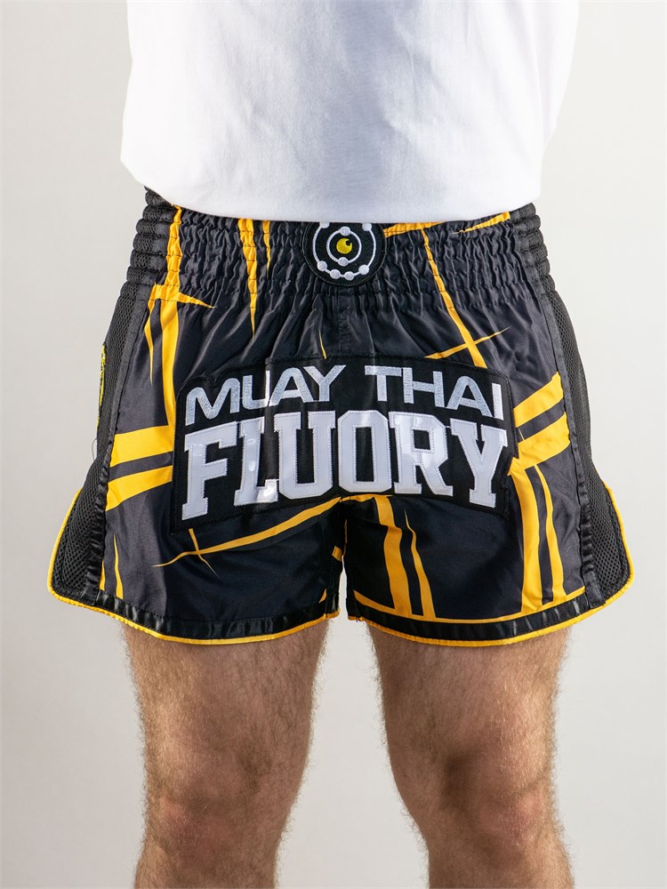 Тайские шорты FLUORY FIRE BASE- прочные и очень удобные, обеспечат спортсмена необходимым комфортом и мобильностью во время тренинга.Сделаны шорты из качественного полиэстера с боковыми вставками из сетчатого материала, присутствуют боковые разрезы, которые помогают свободно передвигаться и наносить высокие удары ногами.Эластичный широкий пояс надежно удерживает шорты на теле бойца при тренинге любой интенсивности.Прочные швы обеспечивают необходимую прочность и долговечность. – Традиционный широкий пояс для комфорта и поддержки. – Качество вышивки и нашивок – 100% полиэстер (мягкий нейлон, легкий и очень изысканный)