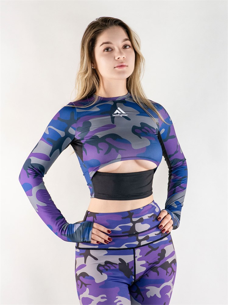 Iamfighter Рашгард женский Military Purple Материал: 85%, полиэстер 15%, спандекс Новый лонгслив - это вещь, которая повысит вашу уверенность в себе, как только вы его наденете. Изысканный дизайн с интригующими вырезами и деталями лампас очень женственен и экстравагантен