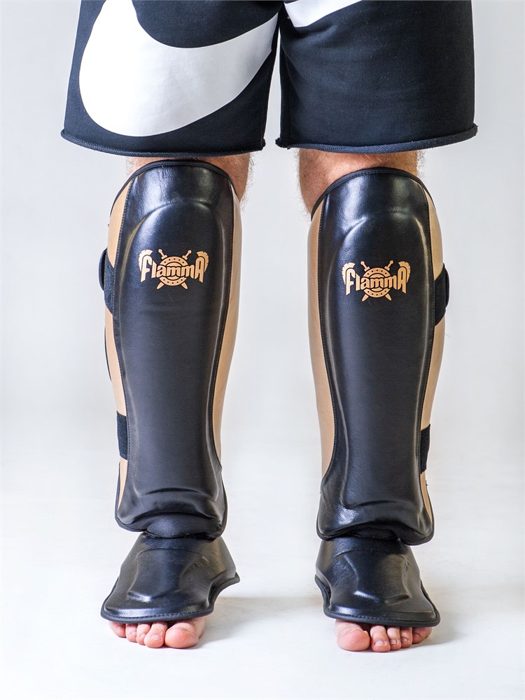 Защита голень-стопа FLAMMA Gold Elite (инженерная кожа, черный)