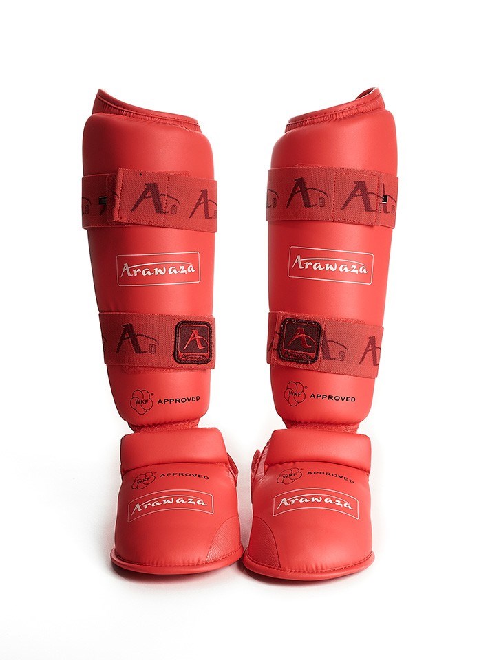 Защита голени и стопы для каратэ ARAWAZA красная (одобрено для соревнований) (уценка)