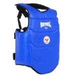 Жилет защитный для тайского бокса. Модель спроектирована и разработана при активном участии федерации тайского бокса России. Жилет изготовлен из износостойкой искусственной кожи. Подкладка из синтетической ткани, которая хорошо впитывает влагу и быстро сохнет, что продлевает срок службы жилета. Внутренний вкладыш жилета выполнен из полимерной пены и сконструирован таким образом, чтобы энергия удара максимально поглощалась и рассеивалась. В конструкции жилета, так же, предусмотрены дополнительные накладки для защиты области почек. На спине жилет крепится при помощи застежек-липучек. Идеальную посадку обеспечивают завязки в сочетании с эластичной тесьмой расположенные в верхней части жилета. Жилет представлен в четырех размерах: S, M, L, XL